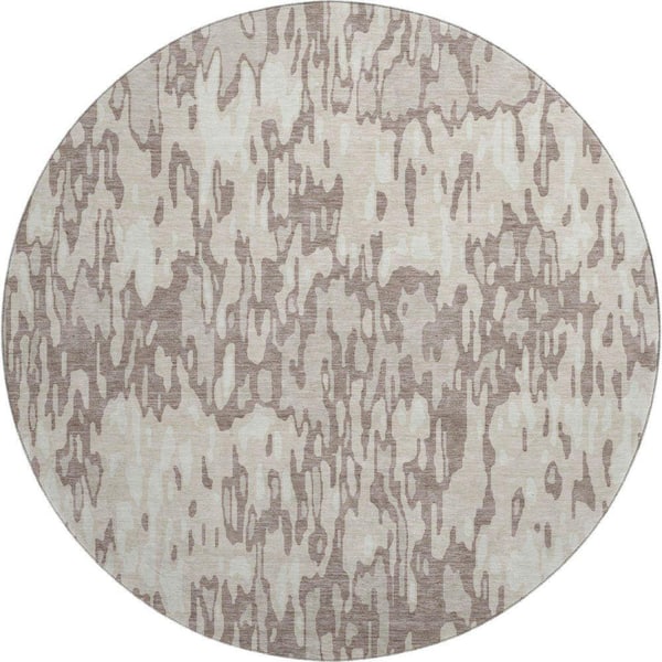 Mayfield Premium Machine Washable Abstract AMF986 Putty 8 ft. x 8 ft. Round Rug