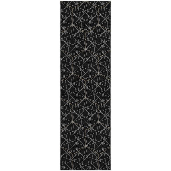 Mayfield Premium Machine Washable Abstract AMF987 Black 2 ft. 3 in. x 7 ft. 6 in. Runner Rug