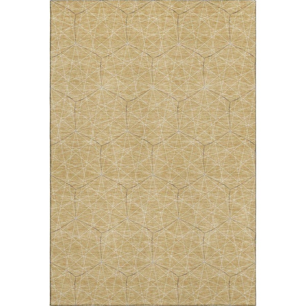 Mayfield Premium Machine Washable Abstract AMF987 Gold 3 ft. x 5 ft. Area Rug