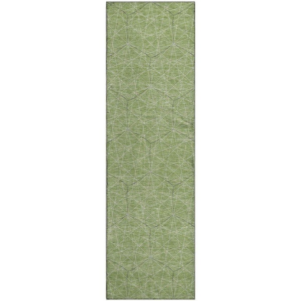 Mayfield Premium Machine Washable Abstract AMF987 Green 2 ft. 3 in. x 7 ft. 6 in. Runner Rug