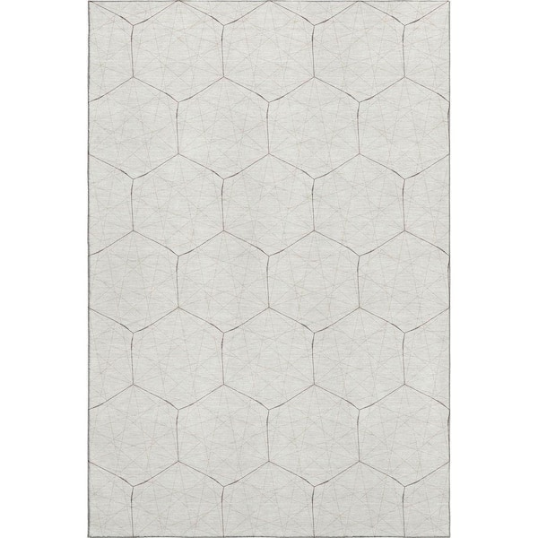 Mayfield Premium Machine Washable Abstract AMF987 Ivory 3 ft. x 5 ft. Area Rug