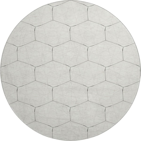 Mayfield Premium Machine Washable Abstract AMF987 Linen 8 ft. x 8 ft. Round Rug