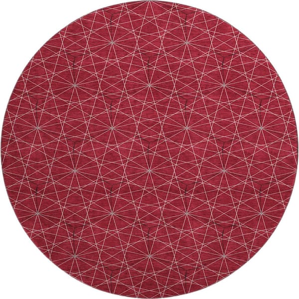 Mayfield Premium Machine Washable Abstract AMF987 Red 8 ft. x 8 ft. Round Rug