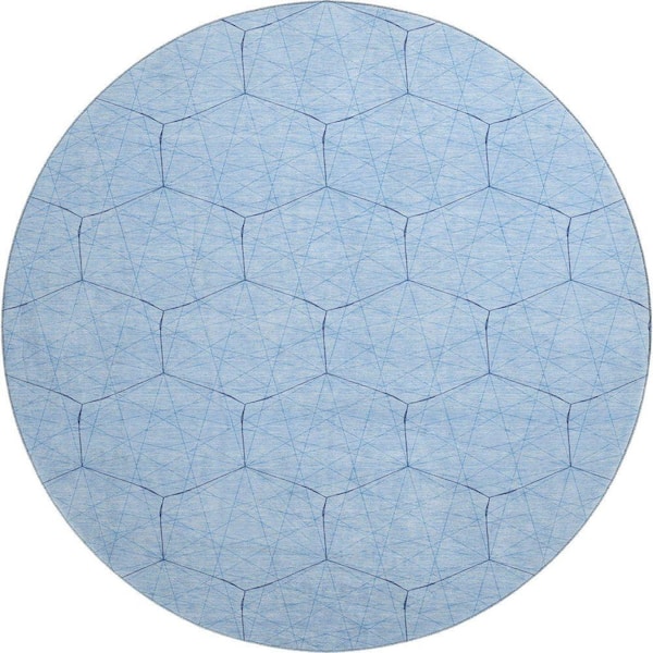 Mayfield Premium Machine Washable Abstract AMF987 Sky 8 ft. x 8 ft. Round Rug