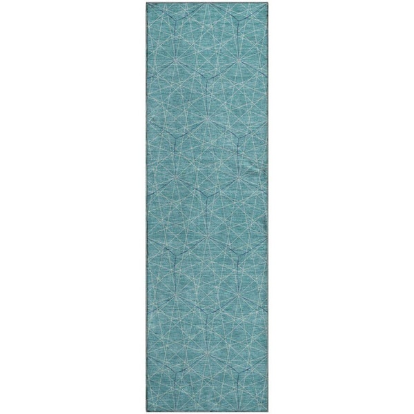 Mayfield Premium Machine Washable Abstract AMF987 Teal 2 ft. 3 in. x 7 ft. 6 in. Runner Rug