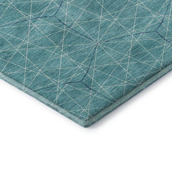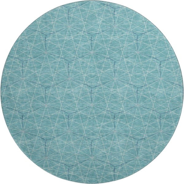 Mayfield Premium Machine Washable Abstract AMF987 Teal 8 ft. x 8 ft. Round Rug