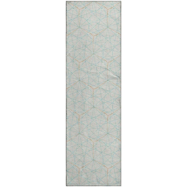 Mayfield Premium Machine Washable Abstract AMF987 White 2 ft. 3 in. x 7 ft. 6 in. Runner Rug