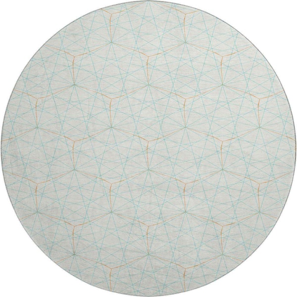 Mayfield Premium Machine Washable Abstract AMF987 White 8 ft. x 8 ft. Round Rug