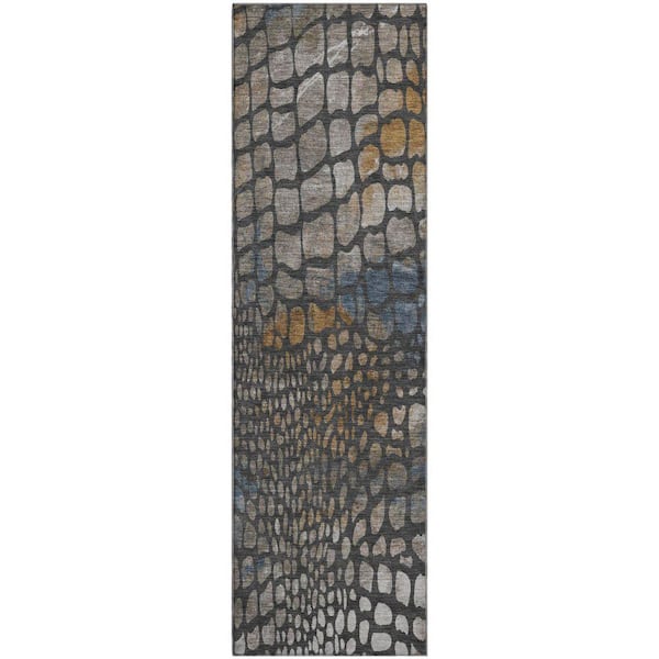 Mayfield Premium Machine Washable Abstract AMF988 Charcoal 2 ft. 3 in. x 7 ft. 6 in. Runner Rug