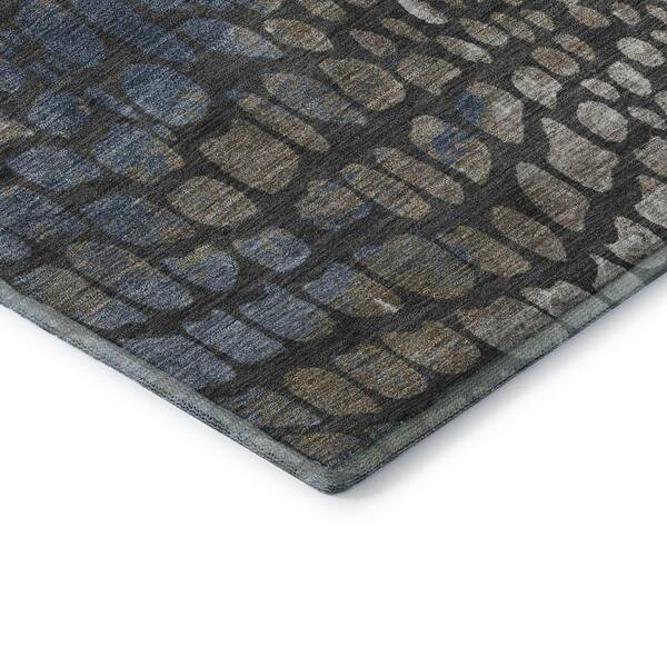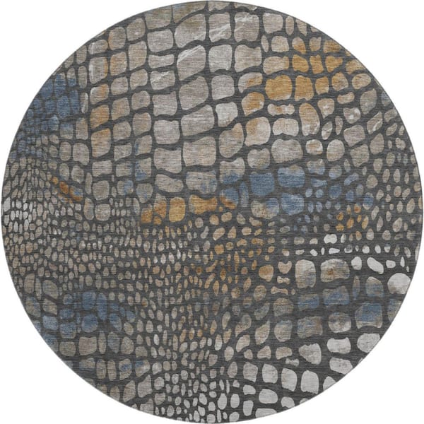 Mayfield Premium Machine Washable Abstract AMF988 Charcoal 8 ft. x 8 ft. Round Rug