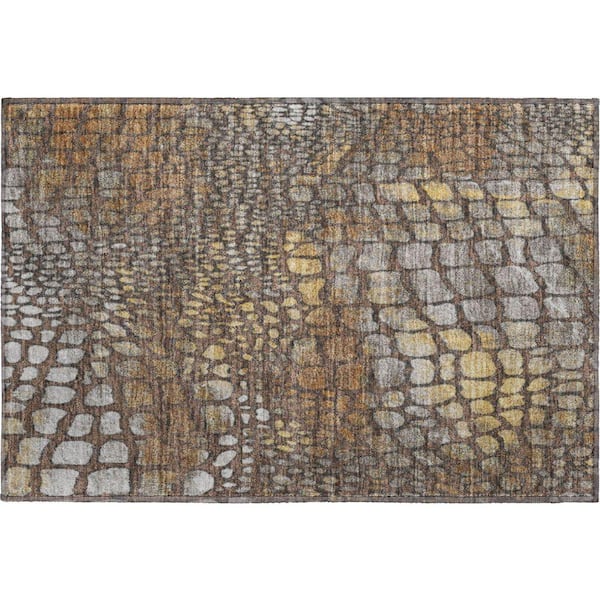 Mayfield Premium Machine Washable Abstract AMF988 Chocolate 2 ft. x 3 ft. Area Rug