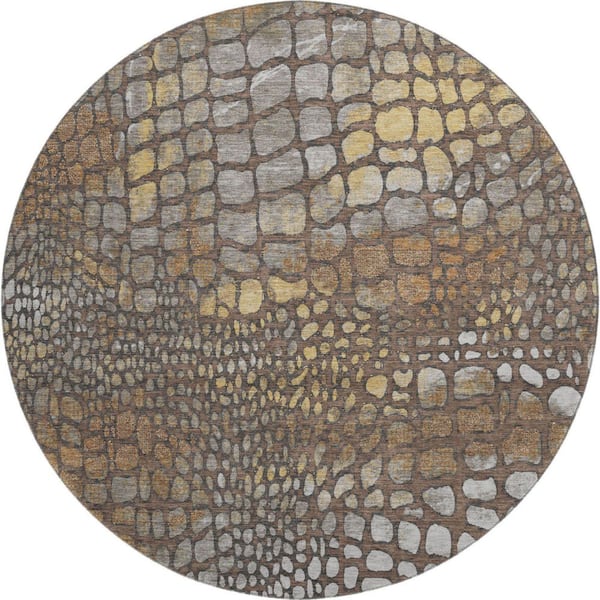 Mayfield Premium Machine Washable Abstract AMF988 Chocolate 8 ft. x 8 ft. Round Rug
