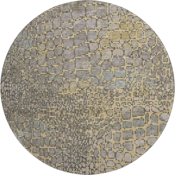 Mayfield Premium Machine Washable Abstract AMF988 Gold 8 ft. x 8 ft. Round Rug