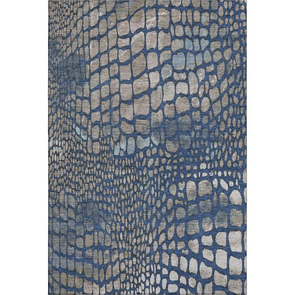 Mayfield Premium Machine Washable Abstract AMF988 Navy 10 ft. x 14 ft. Area Rug