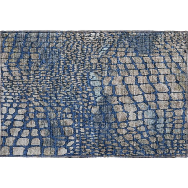 Mayfield Premium Machine Washable Abstract AMF988 Navy 2 ft. x 3 ft. Area Rug