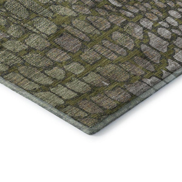 Mayfield Premium Machine Washable Abstract AMF988 Olive 3 ft. x 4 ft. Area Rug
