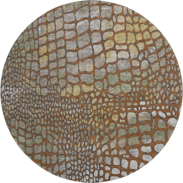 Mayfield Premium Machine Washable Abstract AMF988 Paprika 8 ft. x 8 ft. Round Rug