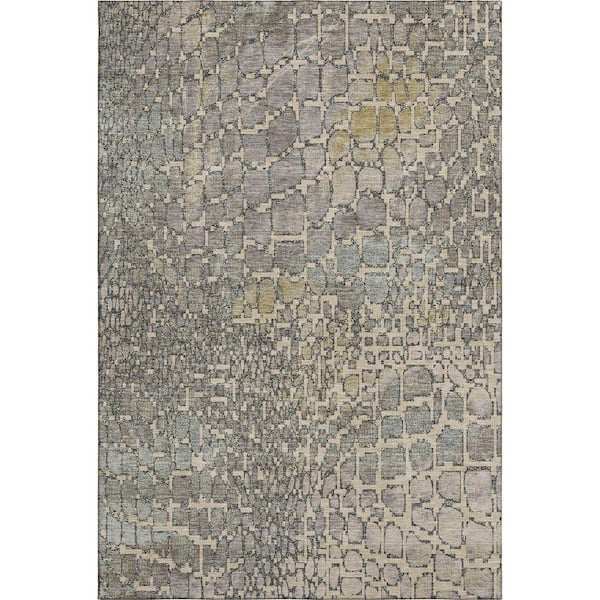 Mayfield Premium Machine Washable Abstract AMF988 Putty 3 ft. x 5 ft. Area Rug