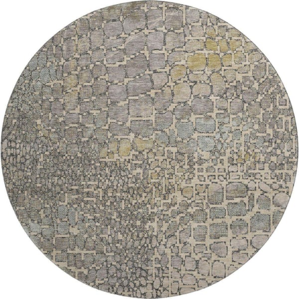 Mayfield Premium Machine Washable Abstract AMF988 Putty 8 ft. x 8 ft. Round Rug