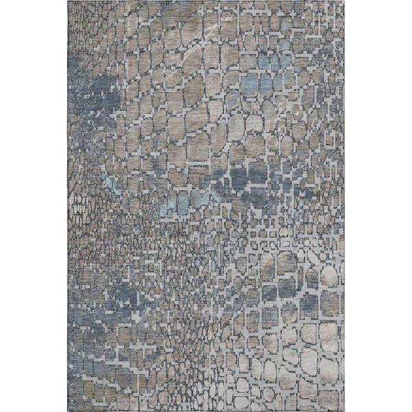 Mayfield Premium Machine Washable Abstract AMF988 Silver 8 ft. x 10 ft. Area Rug