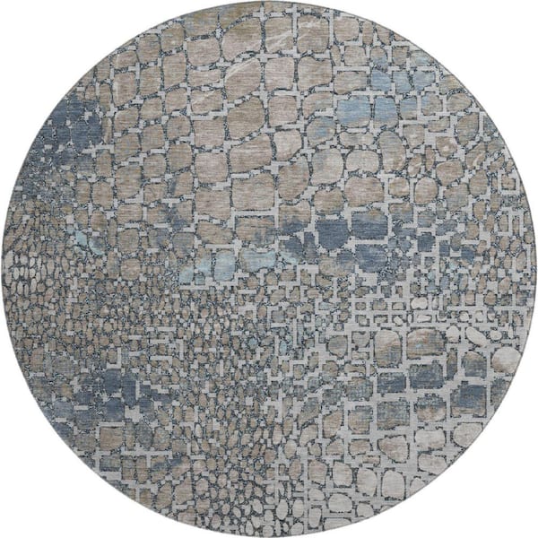 Mayfield Premium Machine Washable Abstract AMF988 Silver 8 ft. x 8 ft. Round Rug