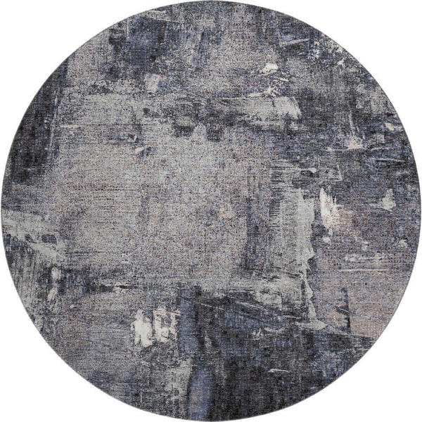 Mayfield Premium Machine Washable Abstract AMF989 Charcoal 8 ft. x 8 ft. Round Rug