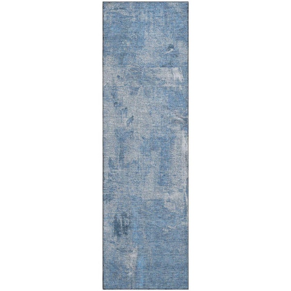 Mayfield Premium Machine Washable Abstract AMF989 Denim 2 ft. 3 in. x 7 ft. 6 in. Runner Rug