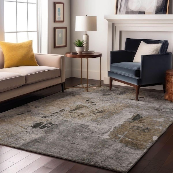 Mayfield Premium Machine Washable Abstract AMF989 Gray 3 ft. x 4 ft. Area Rug