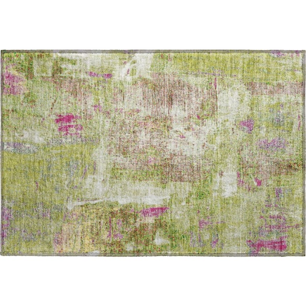 Mayfield Premium Machine Washable Abstract AMF989 Lime 2 ft. x 3 ft. Area Rug