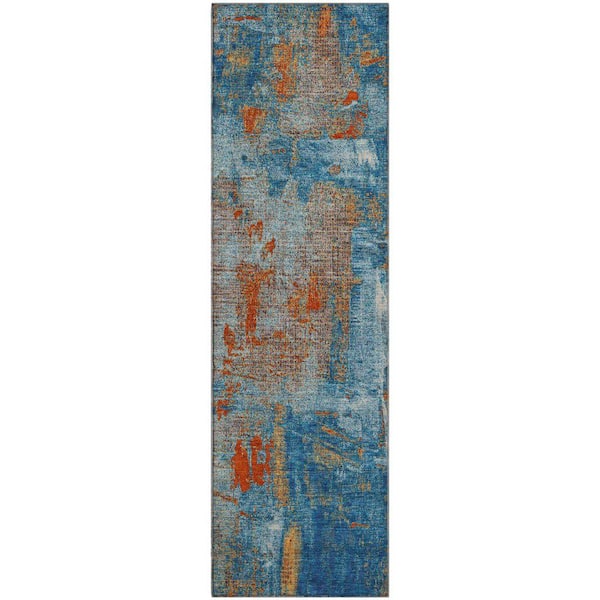 Mayfield Premium Machine Washable Abstract AMF989 Navy 2 ft. 3 in. x 7 ft. 6 in. Runner Rug