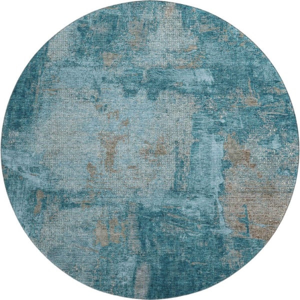 Mayfield Premium Machine Washable Abstract AMF989 Teal 8 ft. x 8 ft. Round Rug