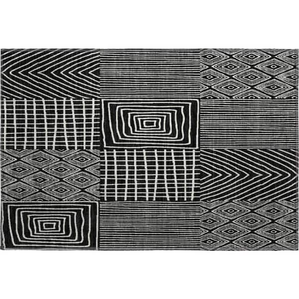 Mayfield Premium Machine Washable Abstract AMF990 Black 2 ft. x 3 ft. Area Rug