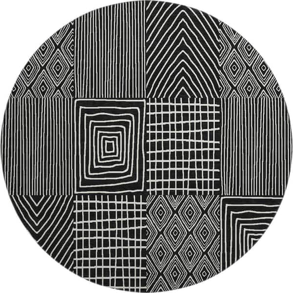 Mayfield Premium Machine Washable Abstract AMF990 Black 8 ft. x 8 ft. Round Rug