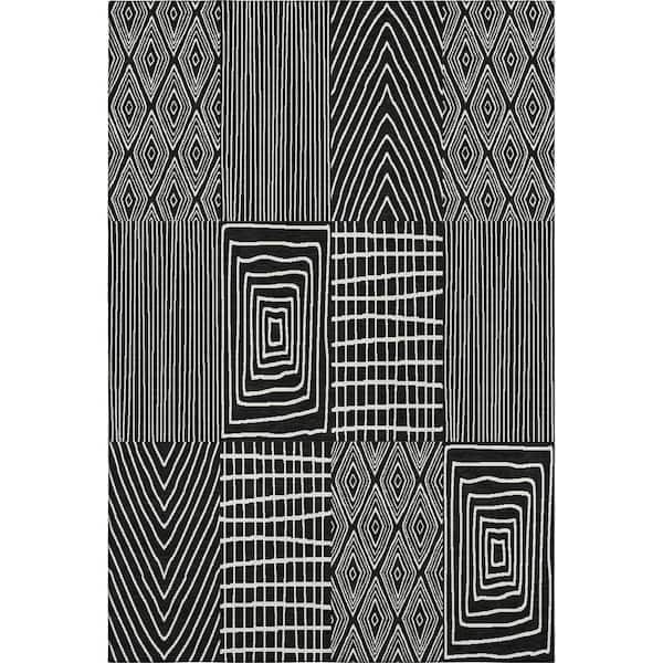 Mayfield Premium Machine Washable Abstract AMF990 Black 9 ft. x 12 ft. Area Rug