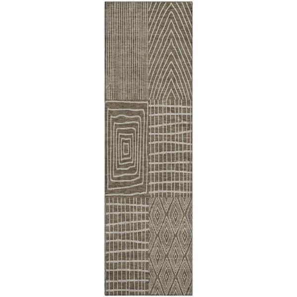 Mayfield Premium Machine Washable Abstract AMF990 Brown 2 ft. 3 in. x 7 ft. 6 in. Runner Rug