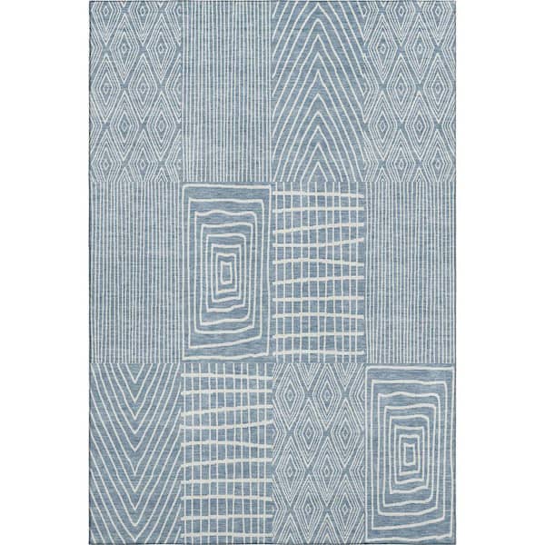 Mayfield Premium Machine Washable Abstract AMF990 Denim 5 ft. x 7 ft. 6 in. Area Rug