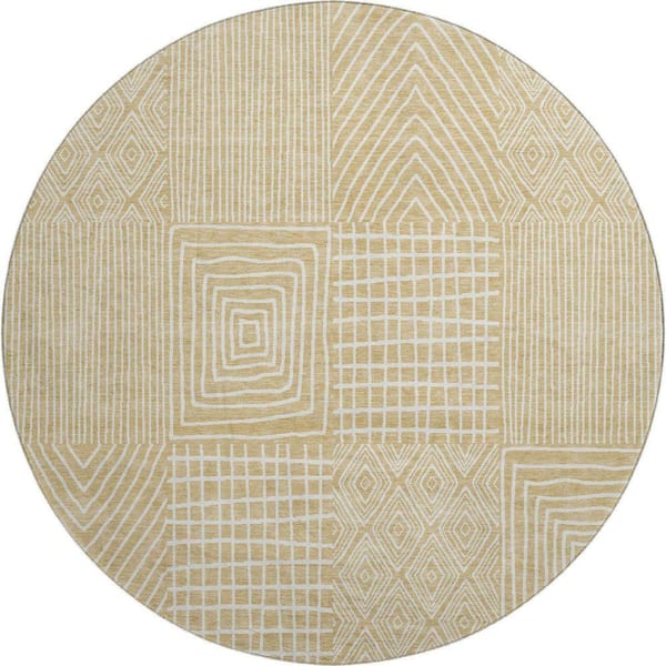 Mayfield Premium Machine Washable Abstract AMF990 Gold 8 ft. x 8 ft. Round Rug