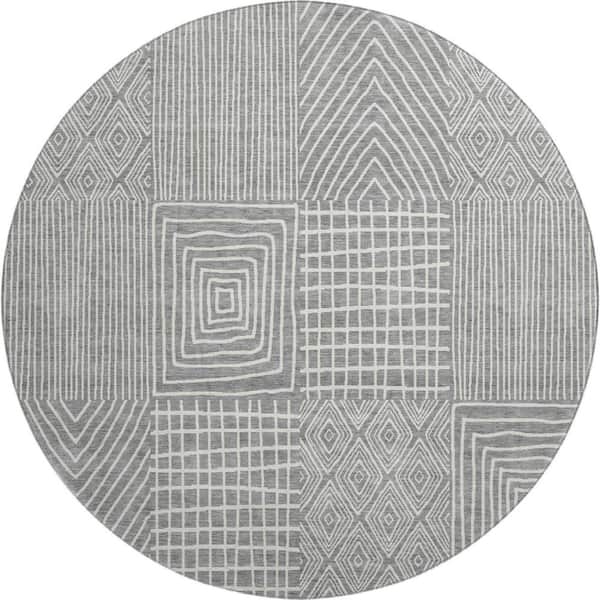 Mayfield Premium Machine Washable Abstract AMF990 Gray 8 ft. x 8 ft. Round Rug