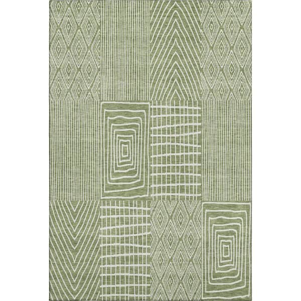 Mayfield Premium Machine Washable Abstract AMF990 Green 10 ft. x 14 ft. Area Rug