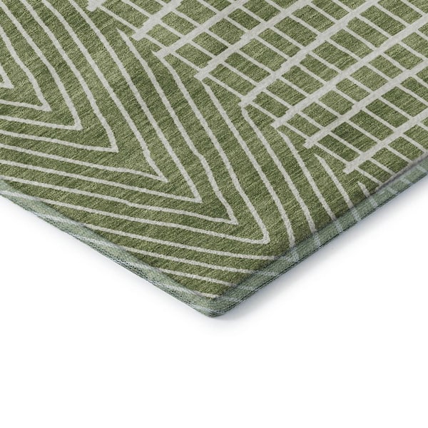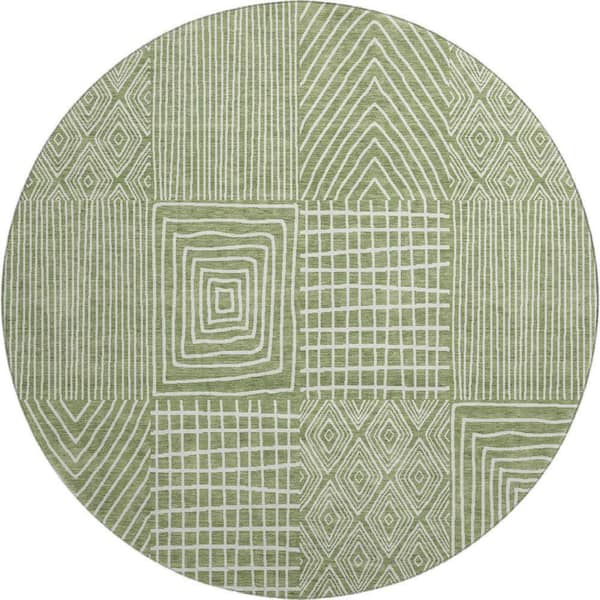 Mayfield Premium Machine Washable Abstract AMF990 Green 8 ft. x 8 ft. Round Rug