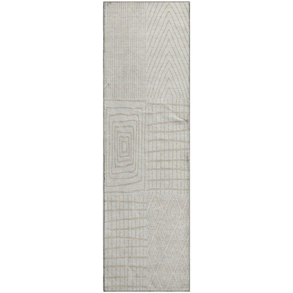 Mayfield Premium Machine Washable Abstract AMF990 Ivory 2 ft. 3 in. x 7 ft. 6 in. Runner Rug