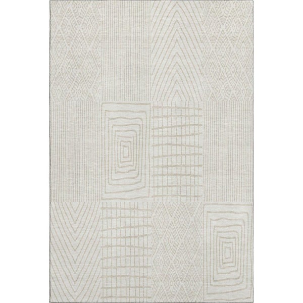 Mayfield Premium Machine Washable Abstract AMF990 Ivory 3 ft. x 5 ft. Area Rug