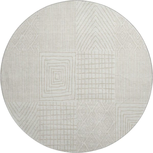 Mayfield Premium Machine Washable Abstract AMF990 Ivory 8 ft. x 8 ft. Round Rug