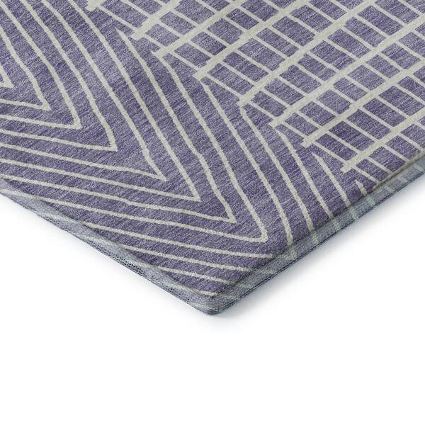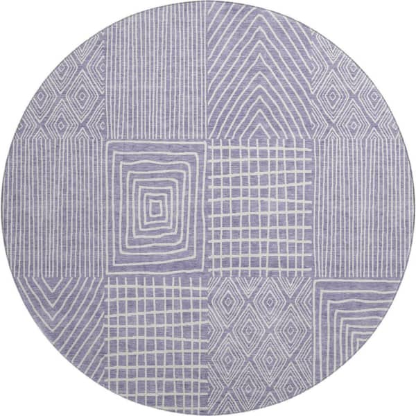 Mayfield Premium Machine Washable Abstract AMF990 Lavender 8 ft. x 8 ft. Round Rug