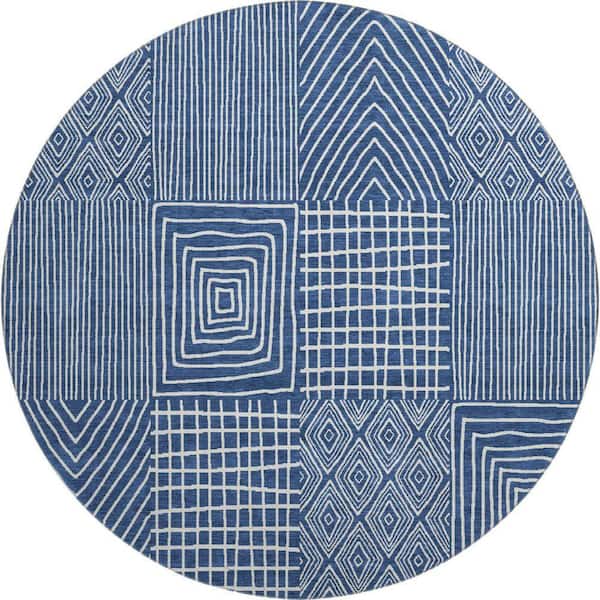 Mayfield Premium Machine Washable Abstract AMF990 Navy 8 ft. x 8 ft. Round Rug