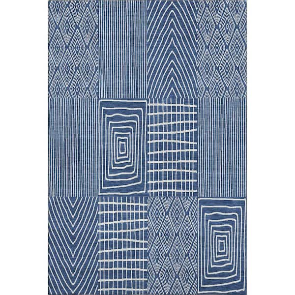 Mayfield Premium Machine Washable Abstract AMF990 Navy 9 ft. x 12 ft. Area Rug