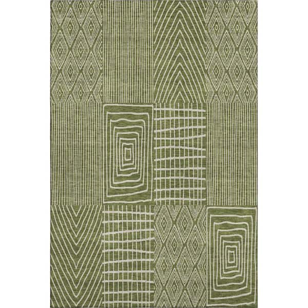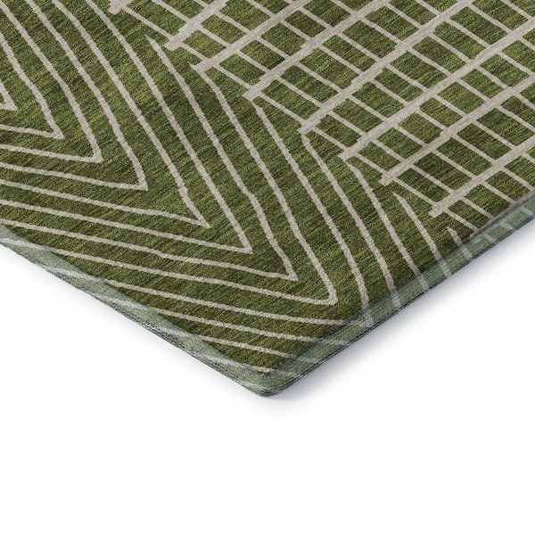 Mayfield Premium Machine Washable Abstract AMF990 Olive 9 ft. x 12 ft. Area Rug