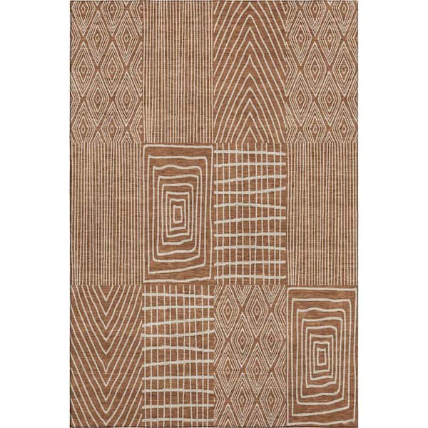 Mayfield Premium Machine Washable Abstract AMF990 Paprika 8 ft. x 10 ft. Area Rug