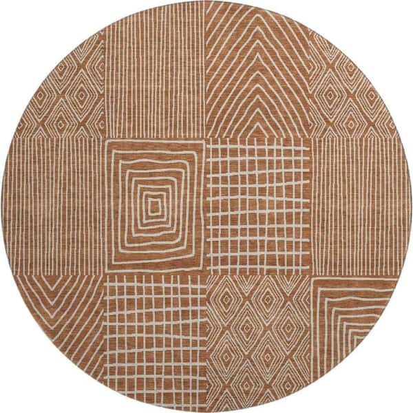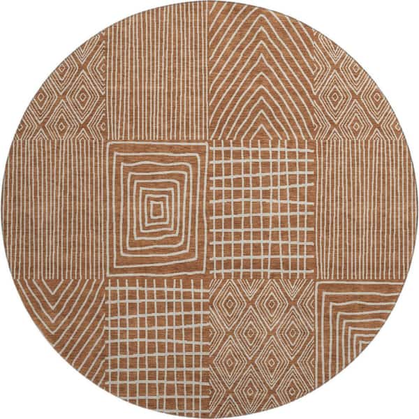 Mayfield Premium Machine Washable Abstract AMF990 Paprika 8 ft. x 8 ft. Round Rug