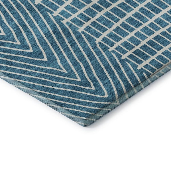 Mayfield Premium Machine Washable Abstract AMF990 Teal 8 ft. x 8 ft. Round Rug